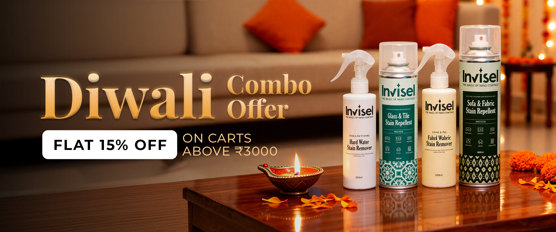 "Invisel saved my beige sofa from chai & curry spills! No stains at all. Amazing product!" - Priya S., Mumbai