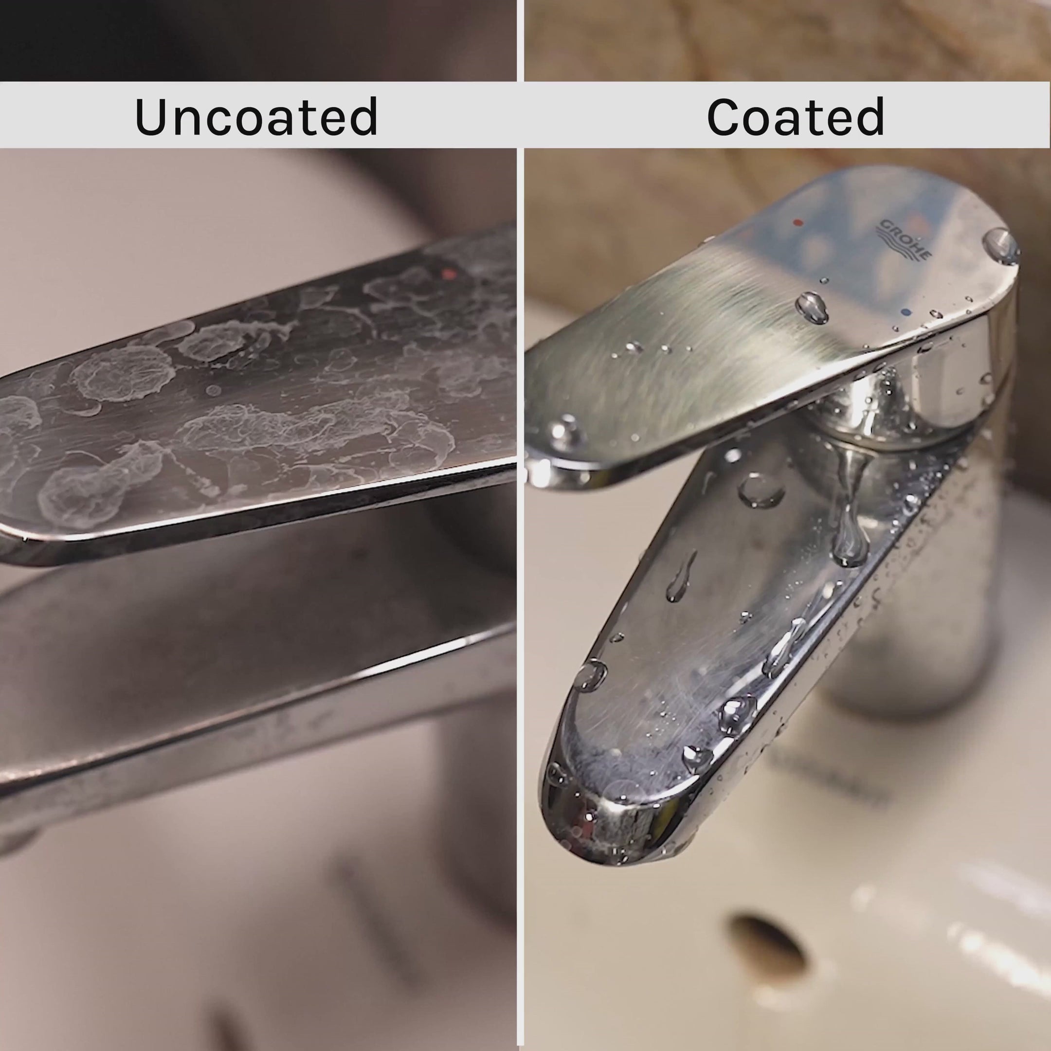 - Works on: shower doors, mirrors, glass windows, taps & tiles